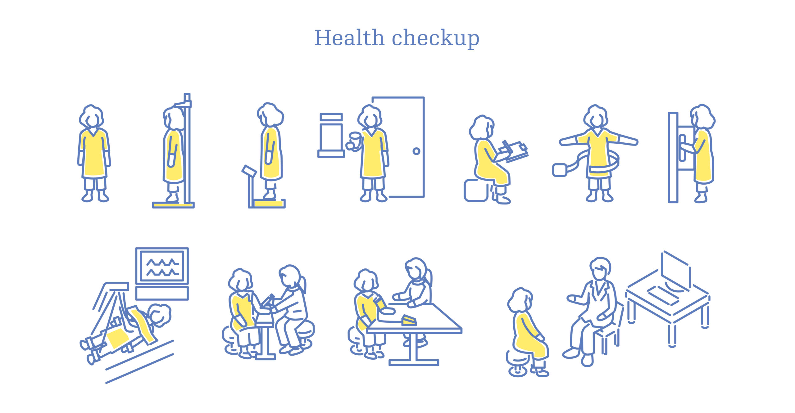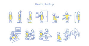 病院で健康診断するシニア女性